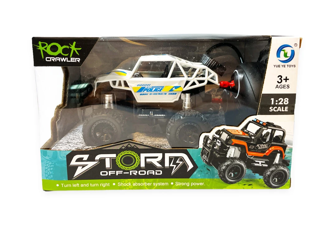 Radiografisch bestuurbare rc auto 1:28 met 4 kanaals besturingssysteem. Met de bijlgeleverde draadloze afstandsbediening kun je de auto in alle richtingen op afstand besturen, vooruit,achteruit, links en rechts.