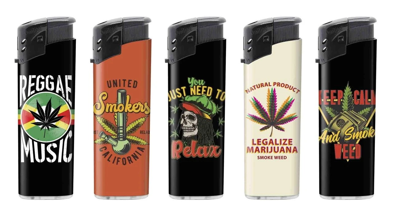 -De aanstekers hebben verschillende marijuana bedrukking.