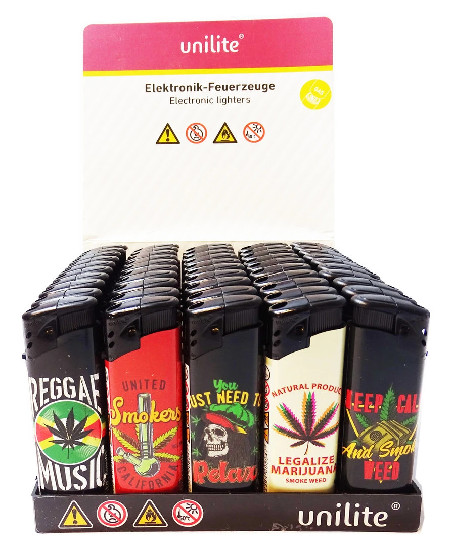 Aanstekers 50 stuks navulbaar- elektronische aansteker met marijuana bedrukking