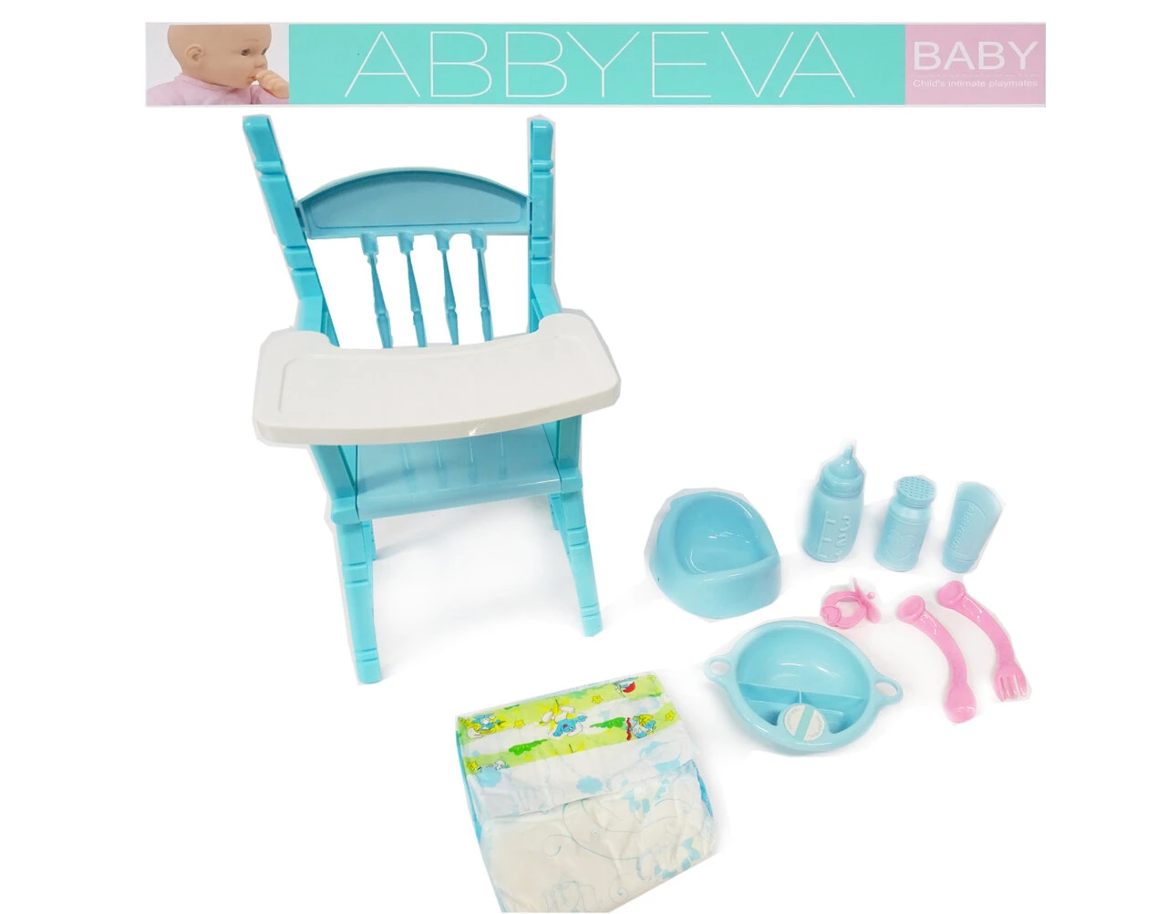 Baby Eva pop – speelgoed baby pop met lunchtafel – incl. 8 accessoires