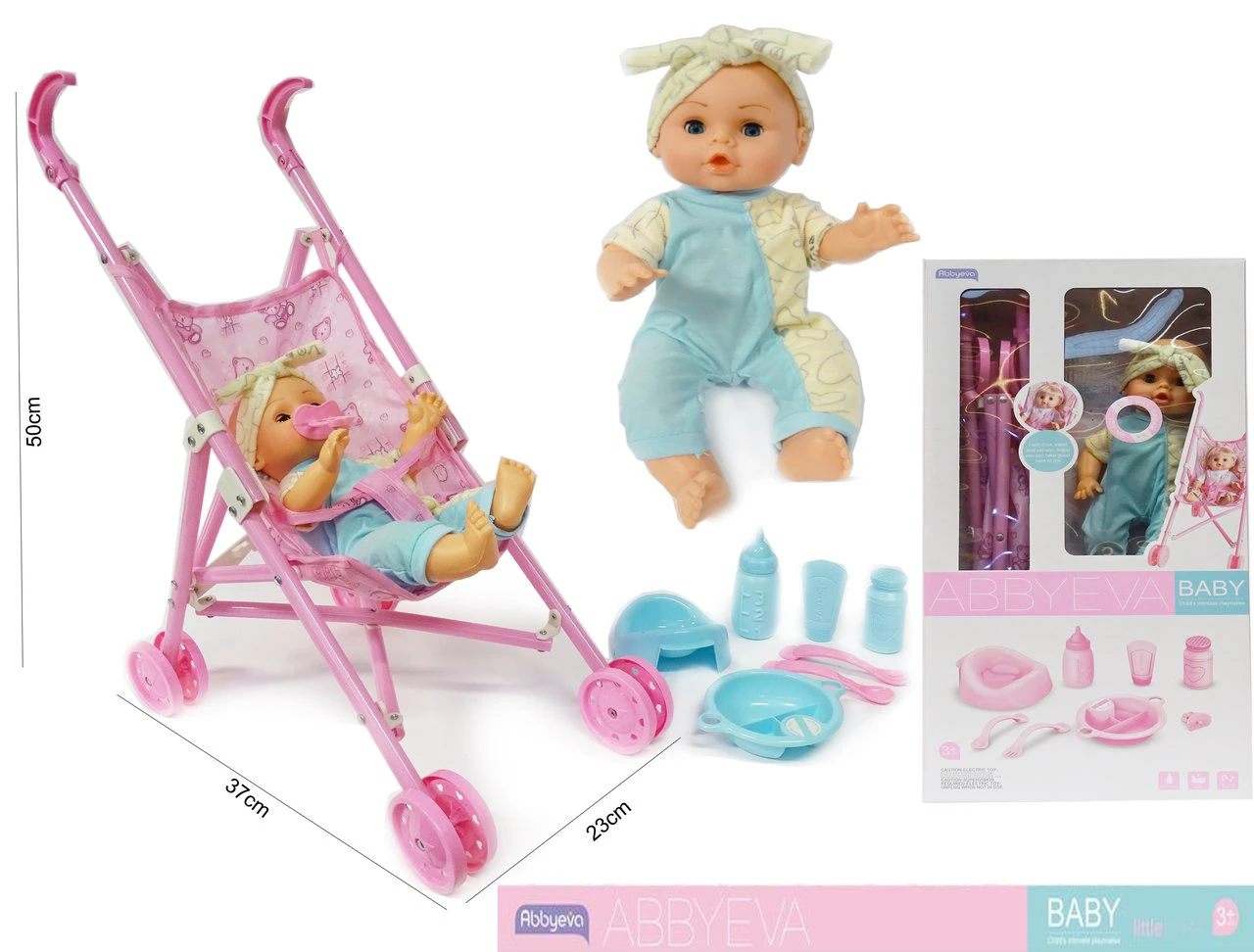 Baby pop Eva met wagen en accessoires – maakt geluid – interactief speelgoed pop