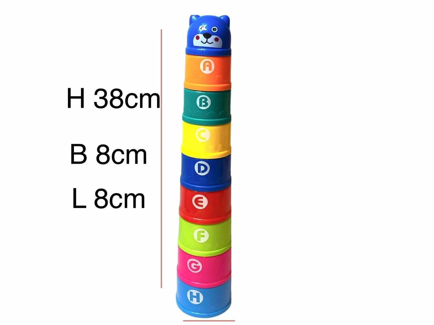 - Deze vrolijke stapeltoren zorgen ervoor dat je kindje lang speel plezier zal ervaren! Alle stapelbekers hebben verschillende mooie kleuren met cijfers en letters.