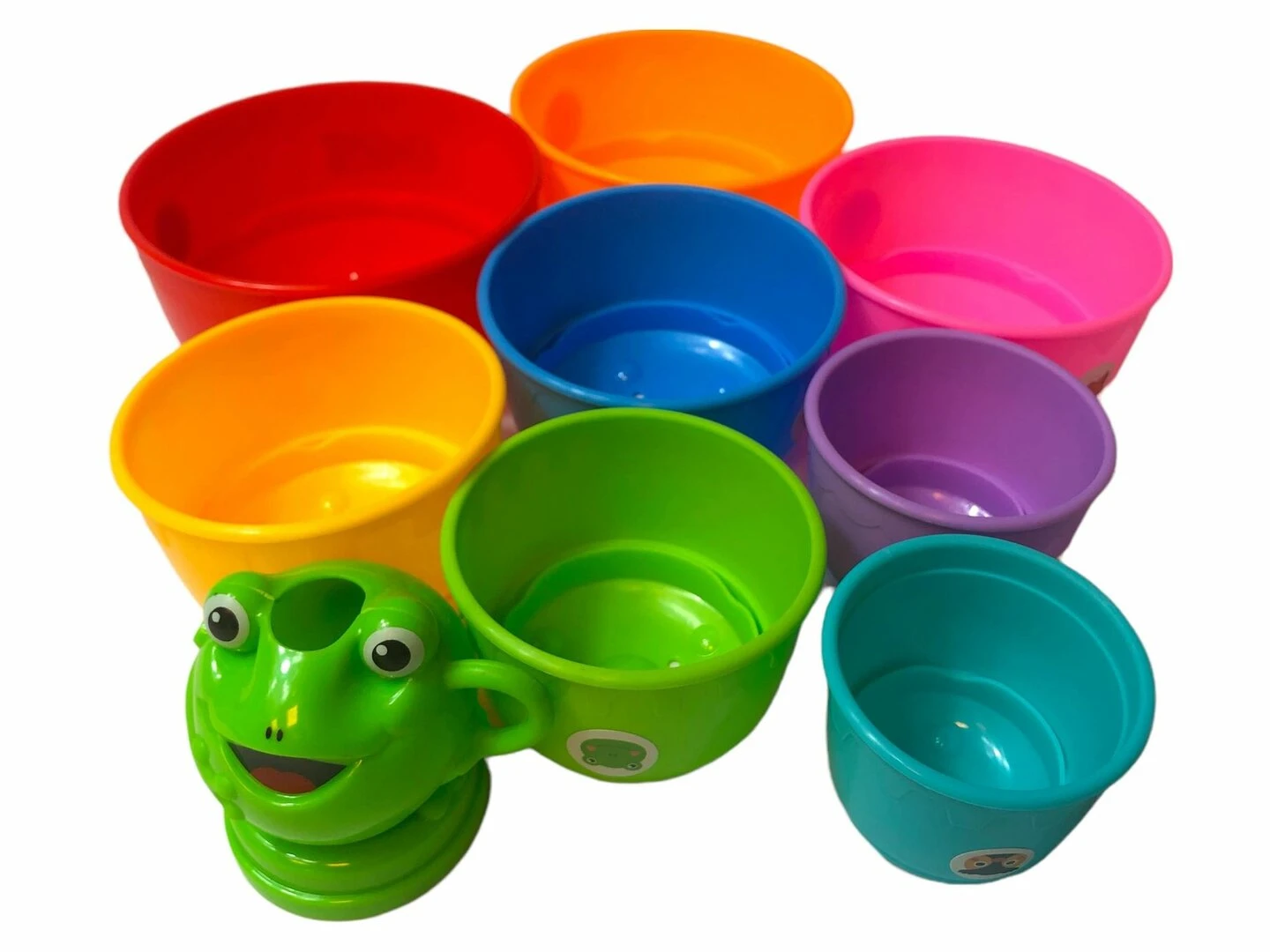 De set is gemaakt van stevig kunststof en bestaat uit 9 ronde blokken in verschillende kleuren.