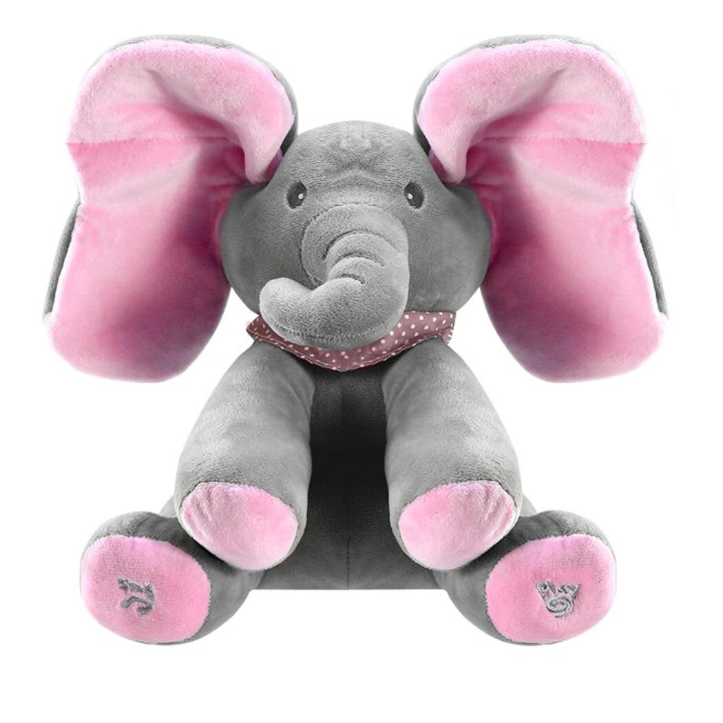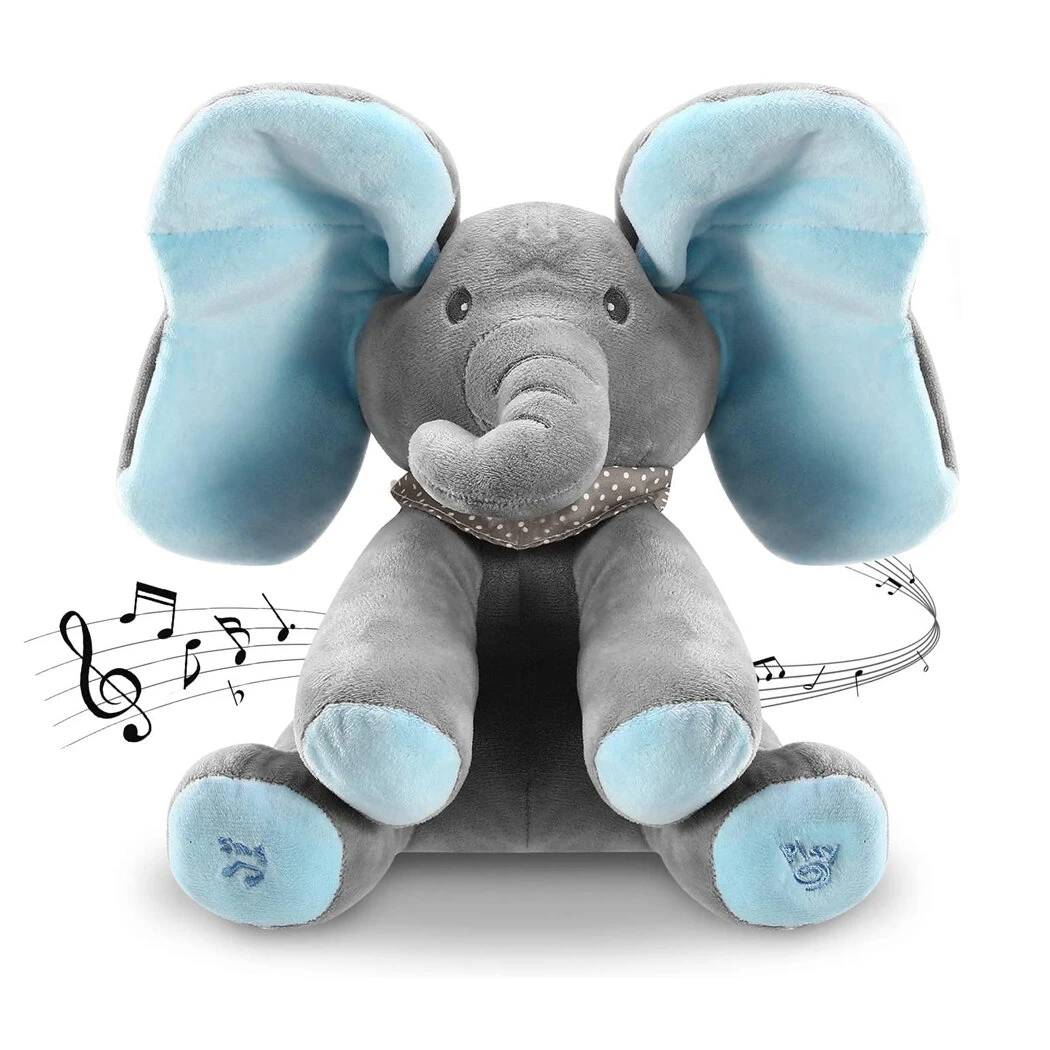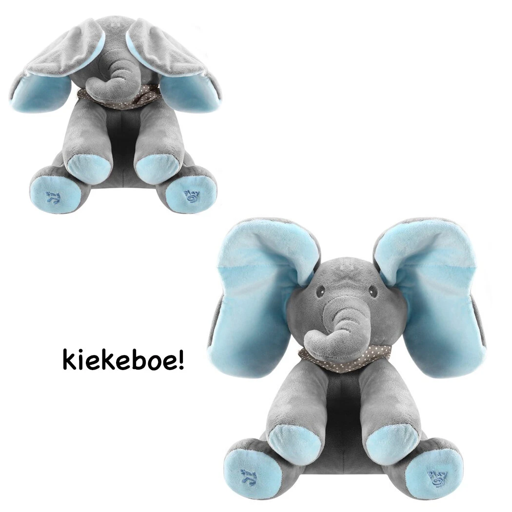 Flappy Olifantje – interactief knuffel speelgoed – kiekeboe – beweegt met de oren – voice opname – zingt liedje – 30CM