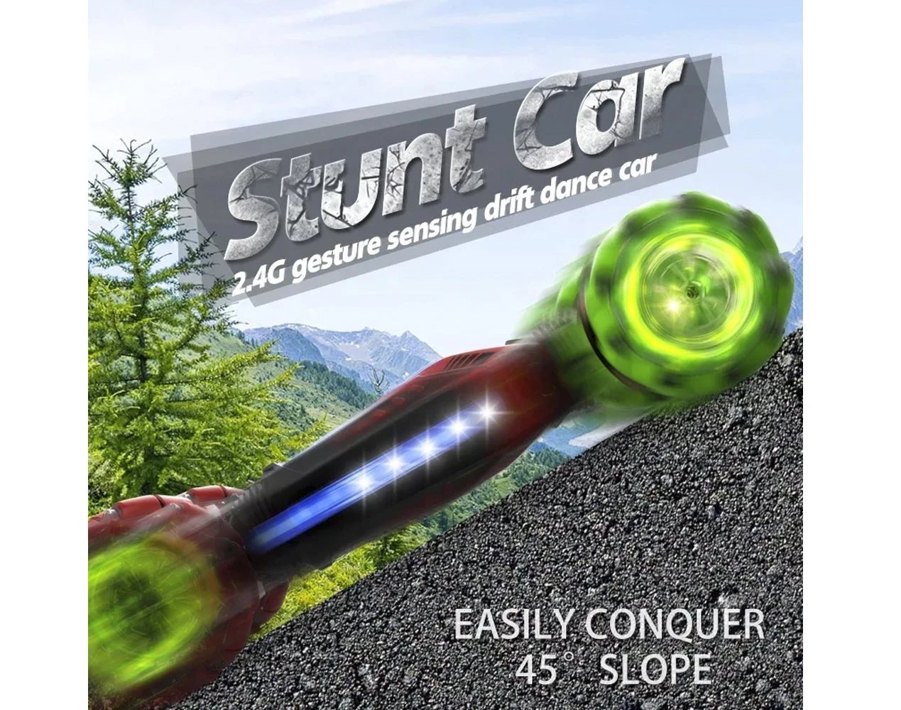 Met de handcontroller bestuur je met enkele handgebaren de auto van links naar rechts en vooruit en achteruit. Ook transformeert de stuntauto met een simpel handgebaar (of een druk op de controller), van platte racer – keihard rijden over een onverharde weg – naar hoge off-roader, waarmee je kunt stunten over obstakels en onverhard terrein. Ook helemaal top aan deze stuntauto is de verlichting aan de voor- en zijkant, in het donker geeft dit een spectaculair effect.