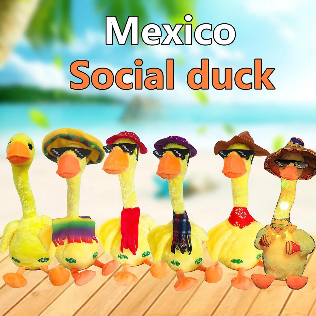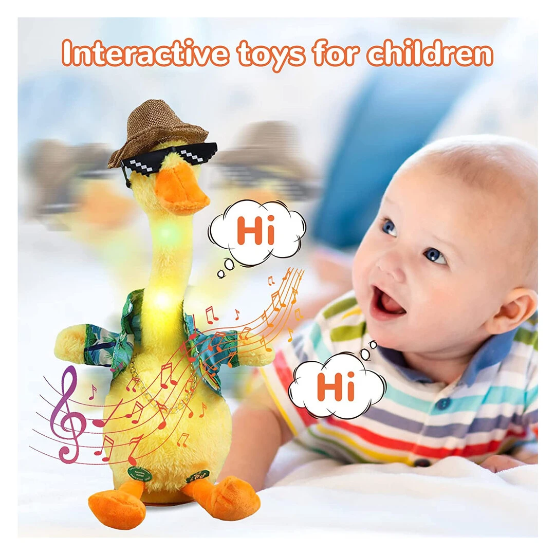 Pratende Eend met kostuum – Oplaadbaar – Dansende en Pratende Interactieve Knuffel 32CM – bekend van TikTok – Talking & dancing Duck – voice opname – 120 liedjes – Pluche Speelgoed