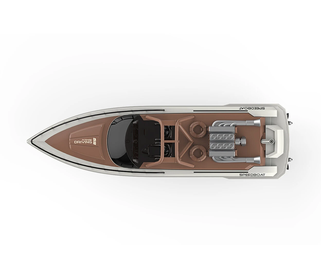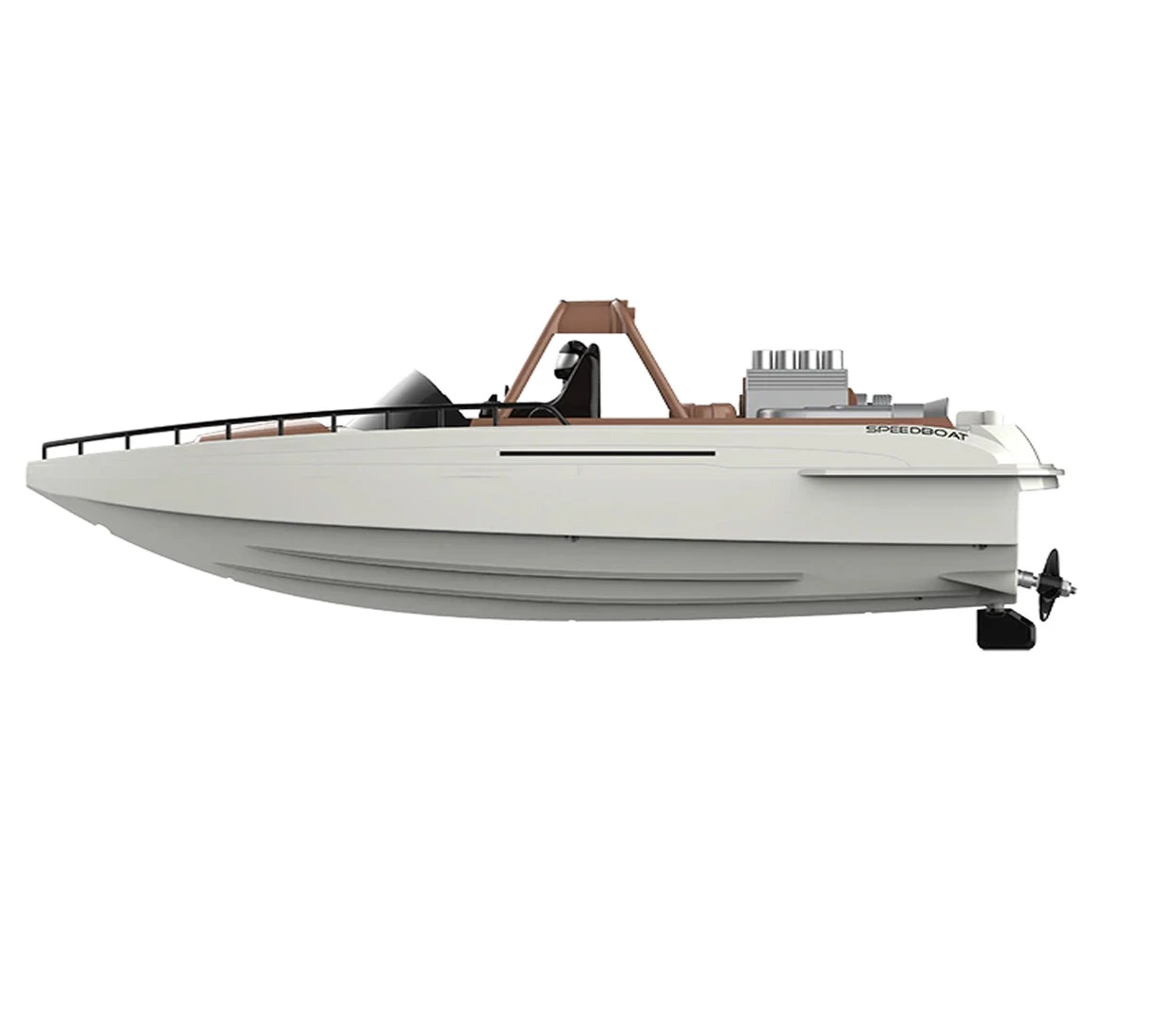 Met het edele bruin en roomwit slaat deze RC-raceboot een indrukwekkend figuur op het meer, op de vijver of in het zwembad als het mooi weer is.