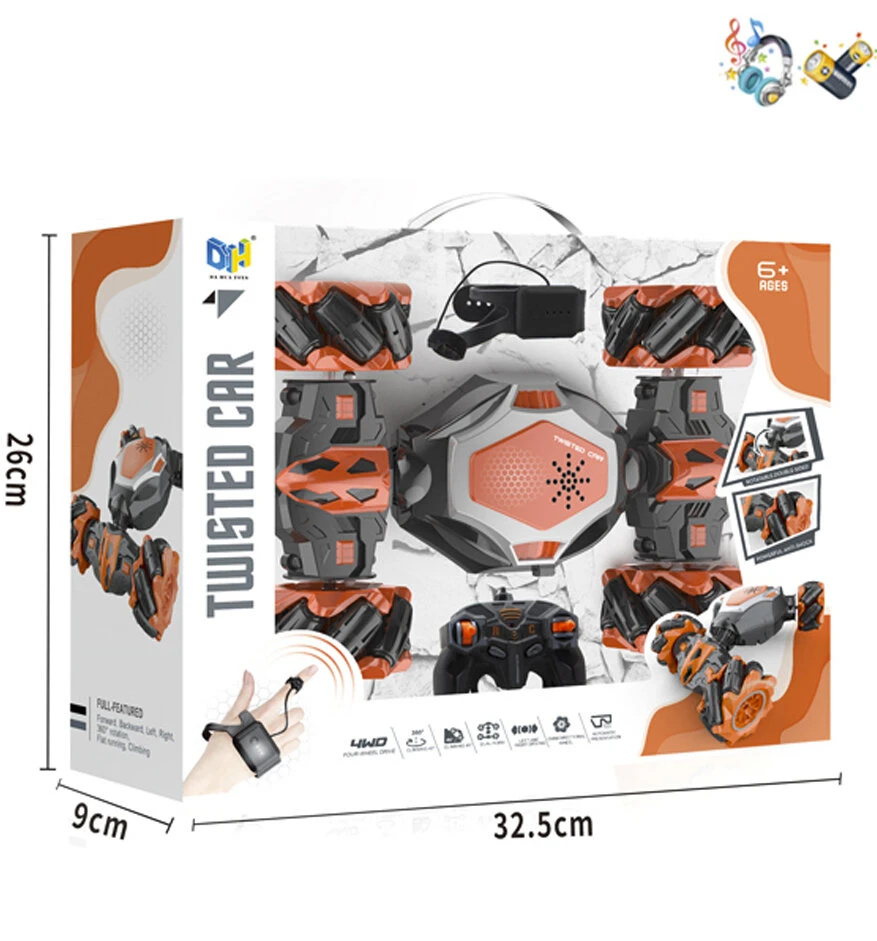 RC Stunt Twisted Car 4WD 2.4GHz – dubbelzijdig transformer auto -LED lichtjes en Muziek – Incl. horloge en afstandsbediening