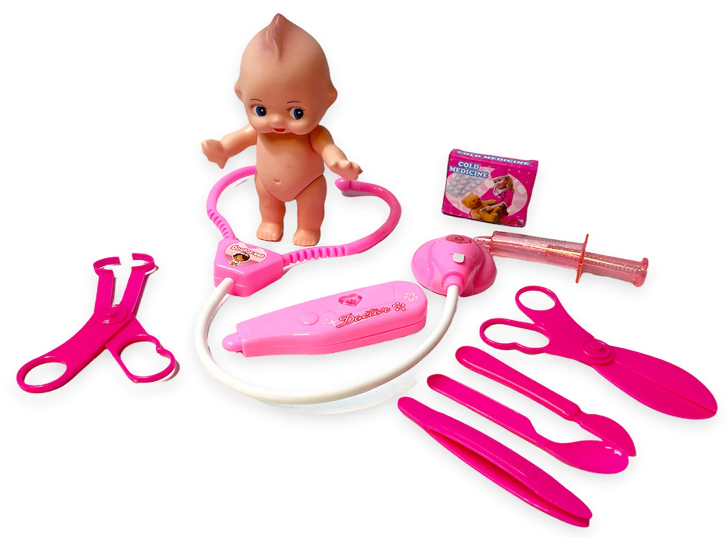 Met deze dokters koffers set kun je zieke pop weer beter maken. Gezond zijn is heel belangrijk. Gezonde mensen zijn blij en gelukkig. Heeft iemand pijn aan zijn hart? Is er iemand met een wondje? Jij bent de dokter, klaar om aan de slag te gaan. Met de stethoscoop kun je de zieke baby controleren door op te drukken zal het lampje rood branden en het hartje horen kloppen.