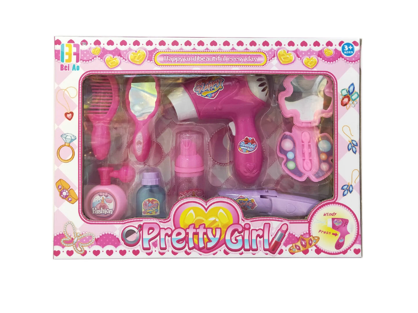 Maak je klaar om op pad te gaan. In deze handige roze beautycase zit alles om er prachtig uit te zien. Dit is een speelgoed set voor peuters en kleuters om te doen alsof ze met makeup bezig zijn. Er zit helemaal geen makeup in, wel accessoires die erop lijken. De Föhn geeft lichte wind en werkt op 2x “AA” batterijen (niet inbegrepen) .