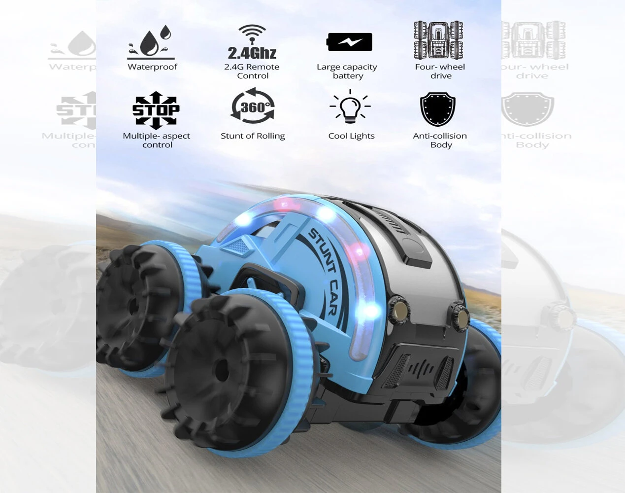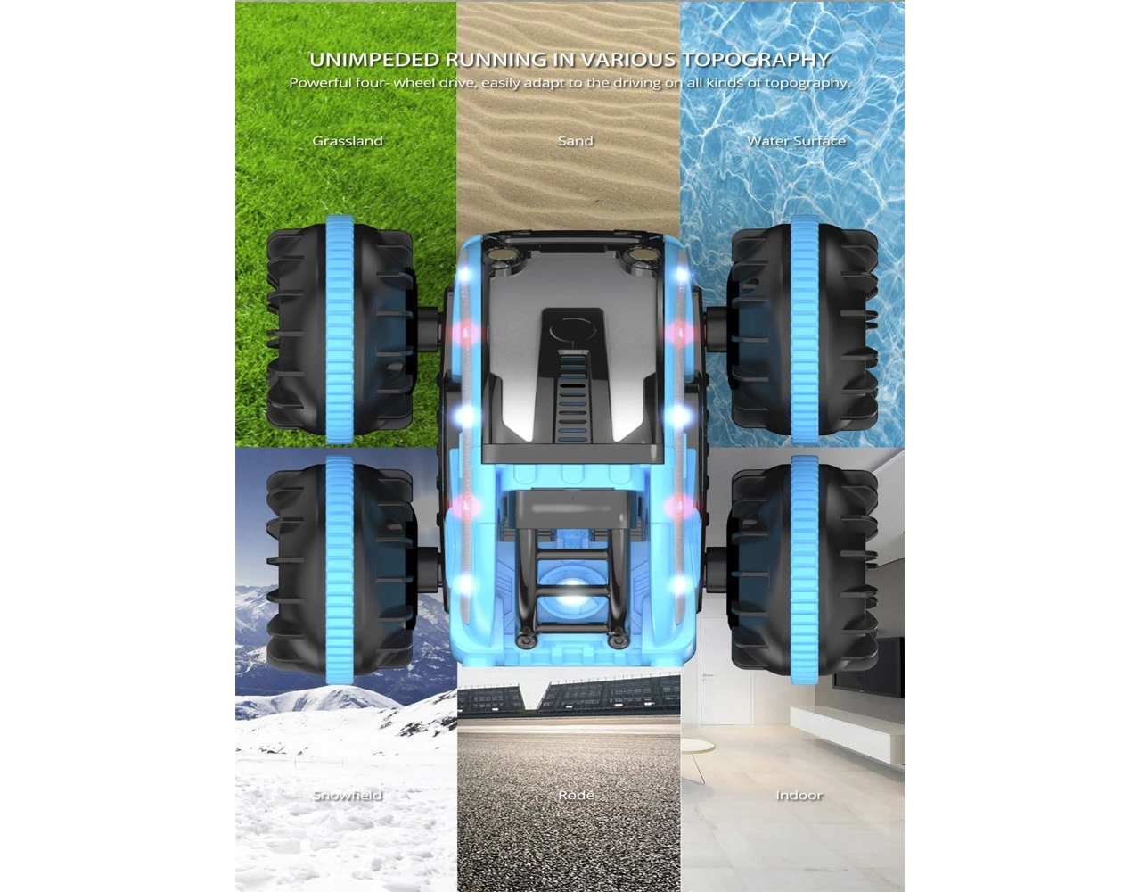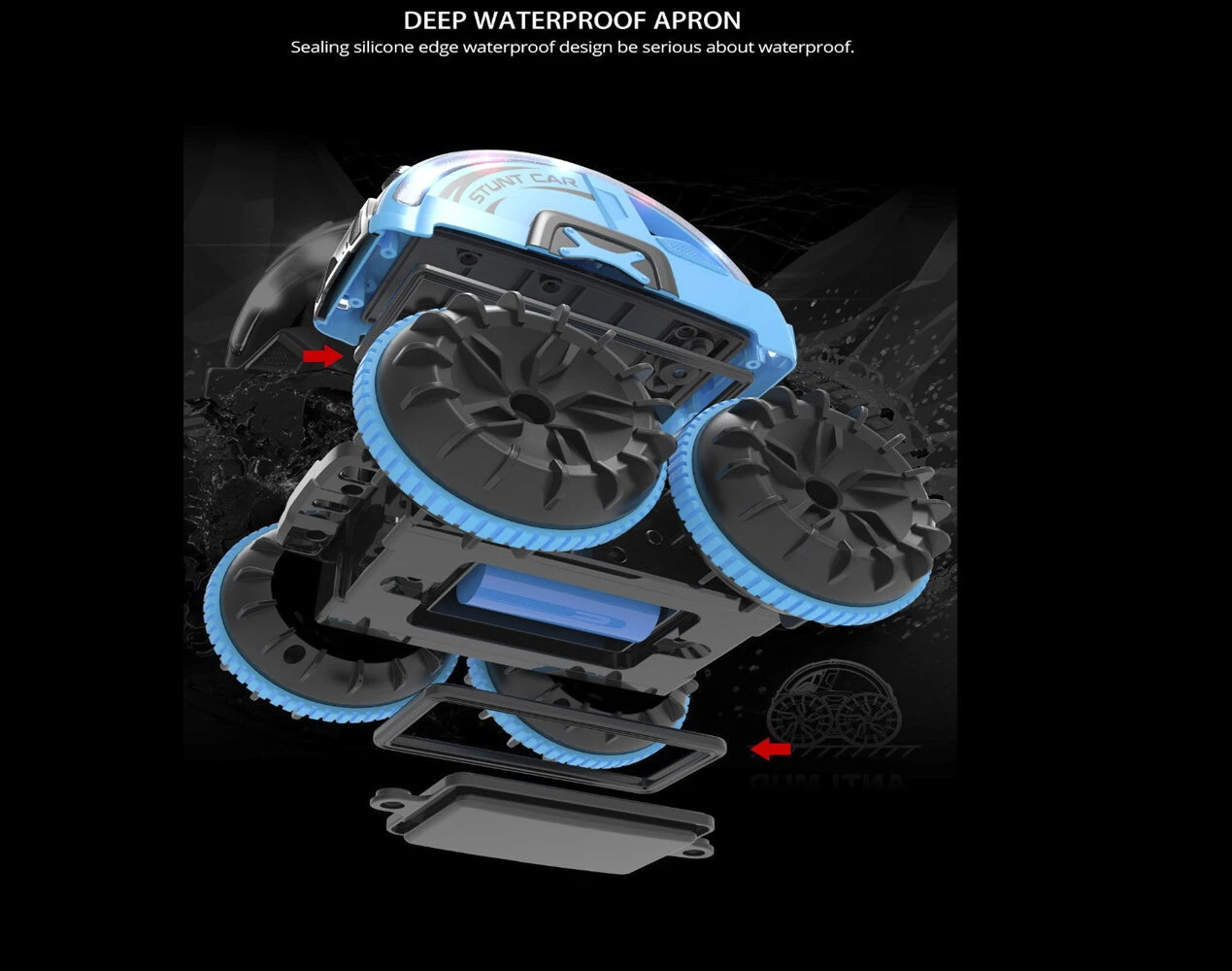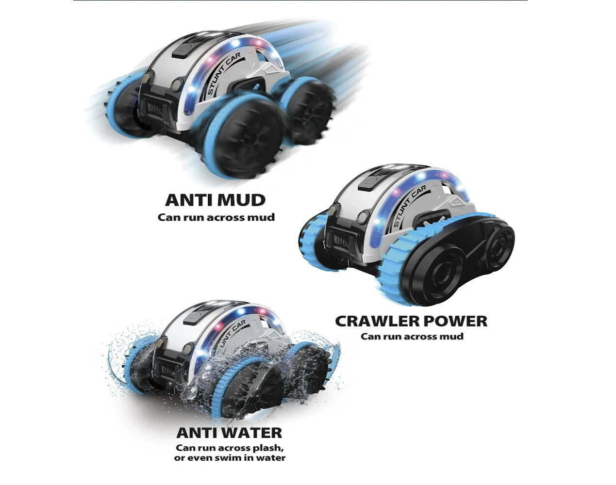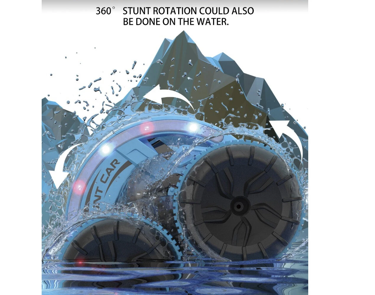 Deze auto is niet alleen een landracer, maar rijdt ook soepel op het water. De stunt auto kan vele stunts maken zoals; front & backflips, 360-graden spins op het water en op de grond. Verder is het wiel van deze auto vervangbaar door getande banden of rupsbanden.