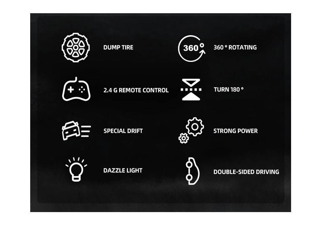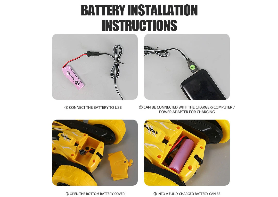 - Inclusief: USB oplaadkabel, Controller, Handleiding, RC Stunt Car, 1x Oplaadbare batterij