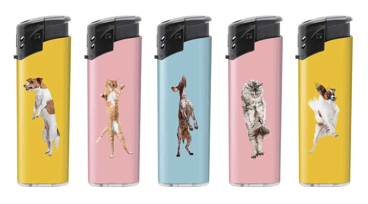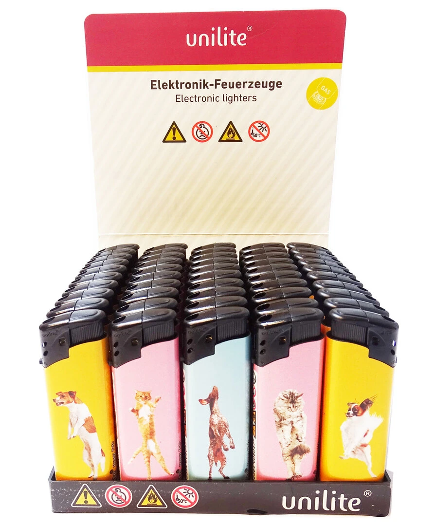 Klik aanstekers 50 in tray navulbaar- Unilite aansteker – honden afbeelding.